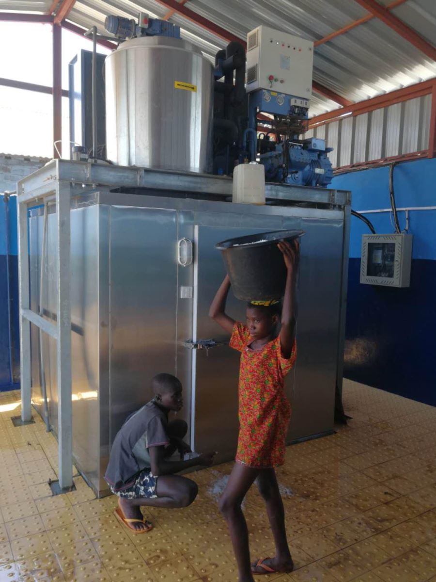 布巴克岛和乌拉卡尼岛隶属于比热戈斯群岛,离首都比绍约60海里。2018年1月3日和3月23日,比绍代表处技术人员分别在布巴克岛和乌拉卡尼岛各安装了一台日制冰量6吨的制冰机组,到目前为止,两台制冰机组运行一切正常。目前,第三台制冰机组正在从国内组织发货,预计7月份前后到达几比。两台制冰机投产后,满足了当地渔民的用冰需求,片冰价格也有所下降。